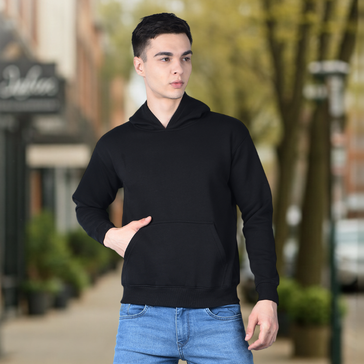 Upgrade your casual wardrobe with this men’s solid black pullover hoodie, designed for both comfort and style. Crafted from high-quality fabric, this hoodie offers a soft feel, durability, and a relaxed yet structured fit. The minimal design makes it easy to pair with jeans or joggers, while the front kangaroo pocket adds practicality.
