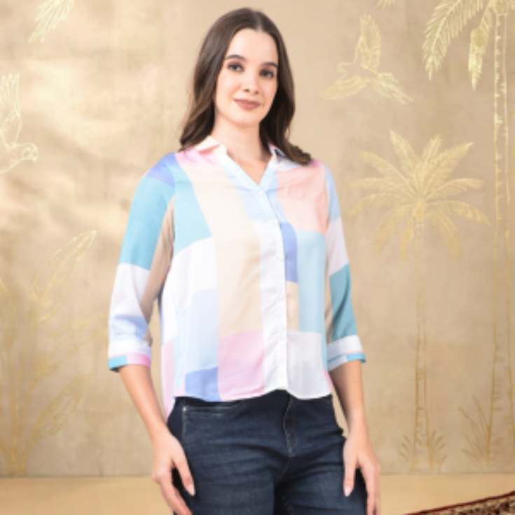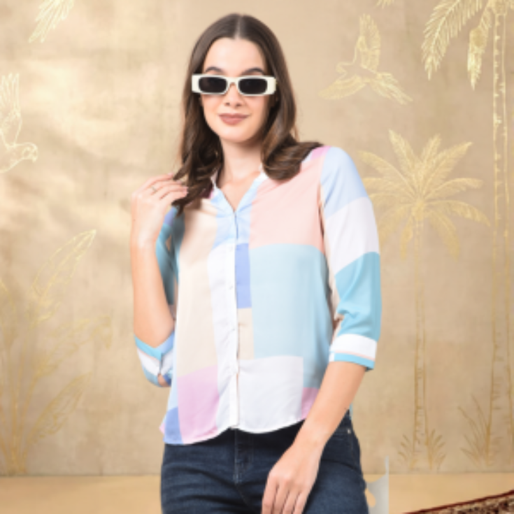 Add a fresh and stylish touch to your wardrobe with this women’s pastel multicolor casual shirt. Crafted from soft, breathable fabric, it offers a comfortable fit that’s perfect for all-day wear. The subtle color-block design creates a modern and elegant look, making it easy to style for both casual outings and semi-formal occasions.